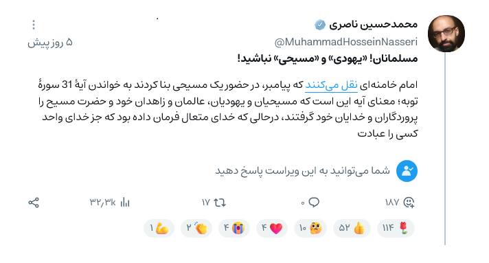 مسلمانان! «یهودی» و «مسیحی» نباشید!